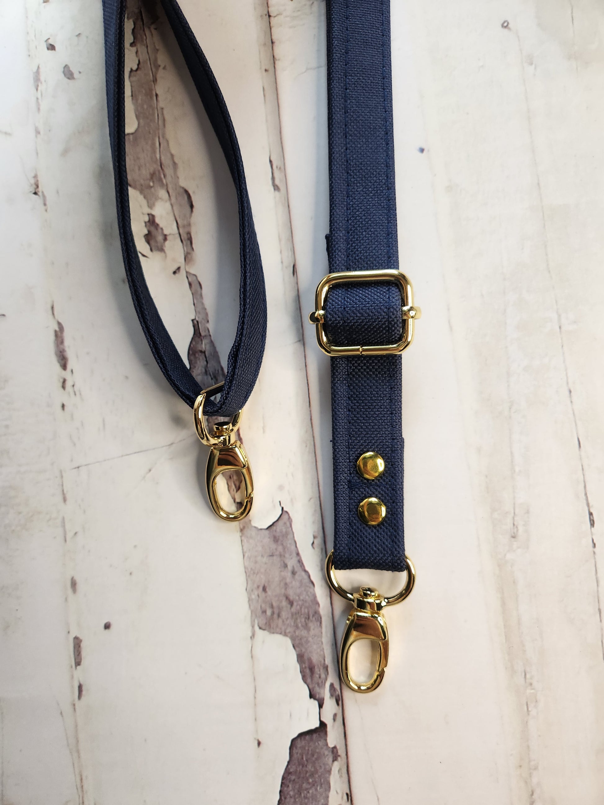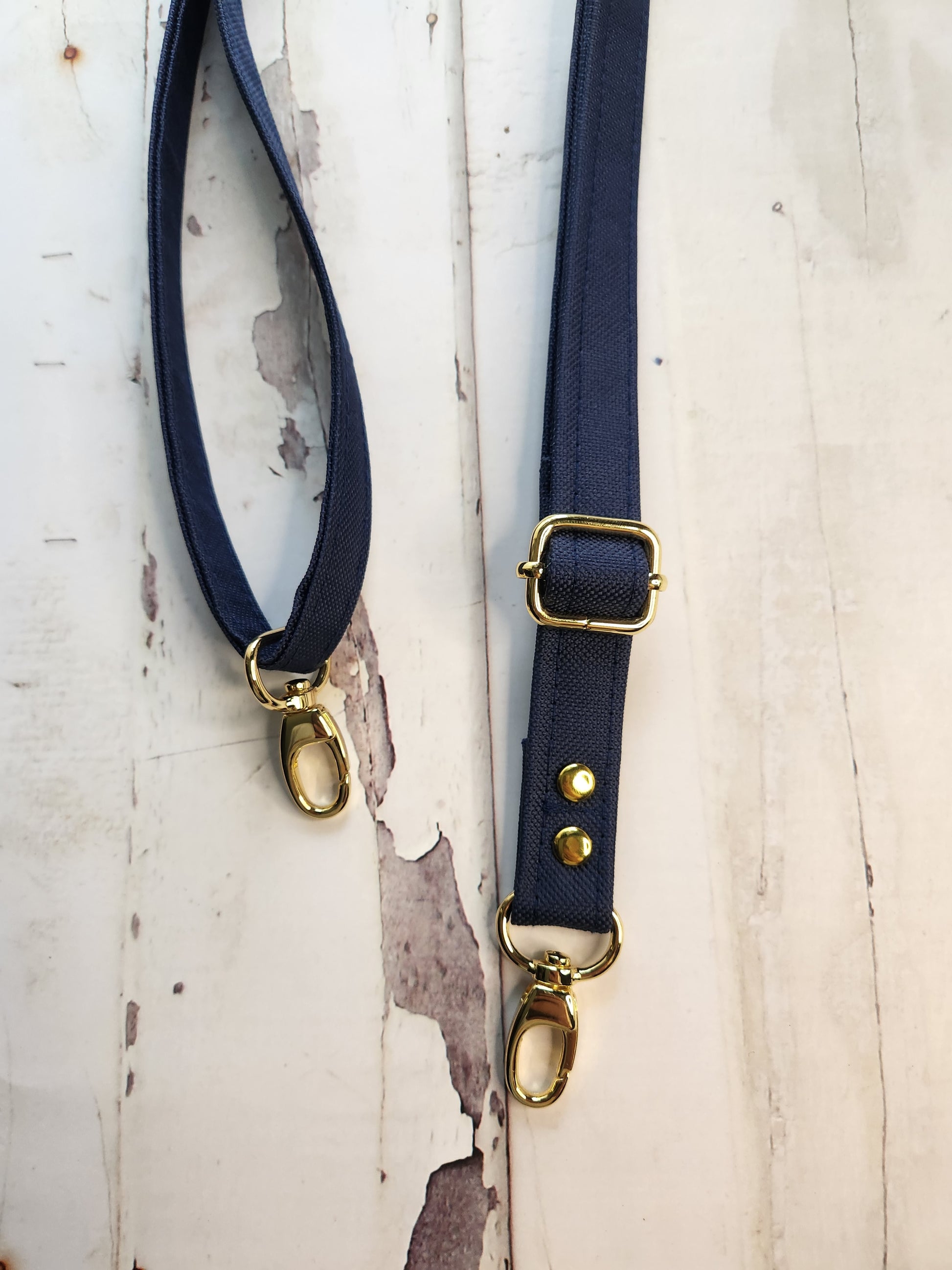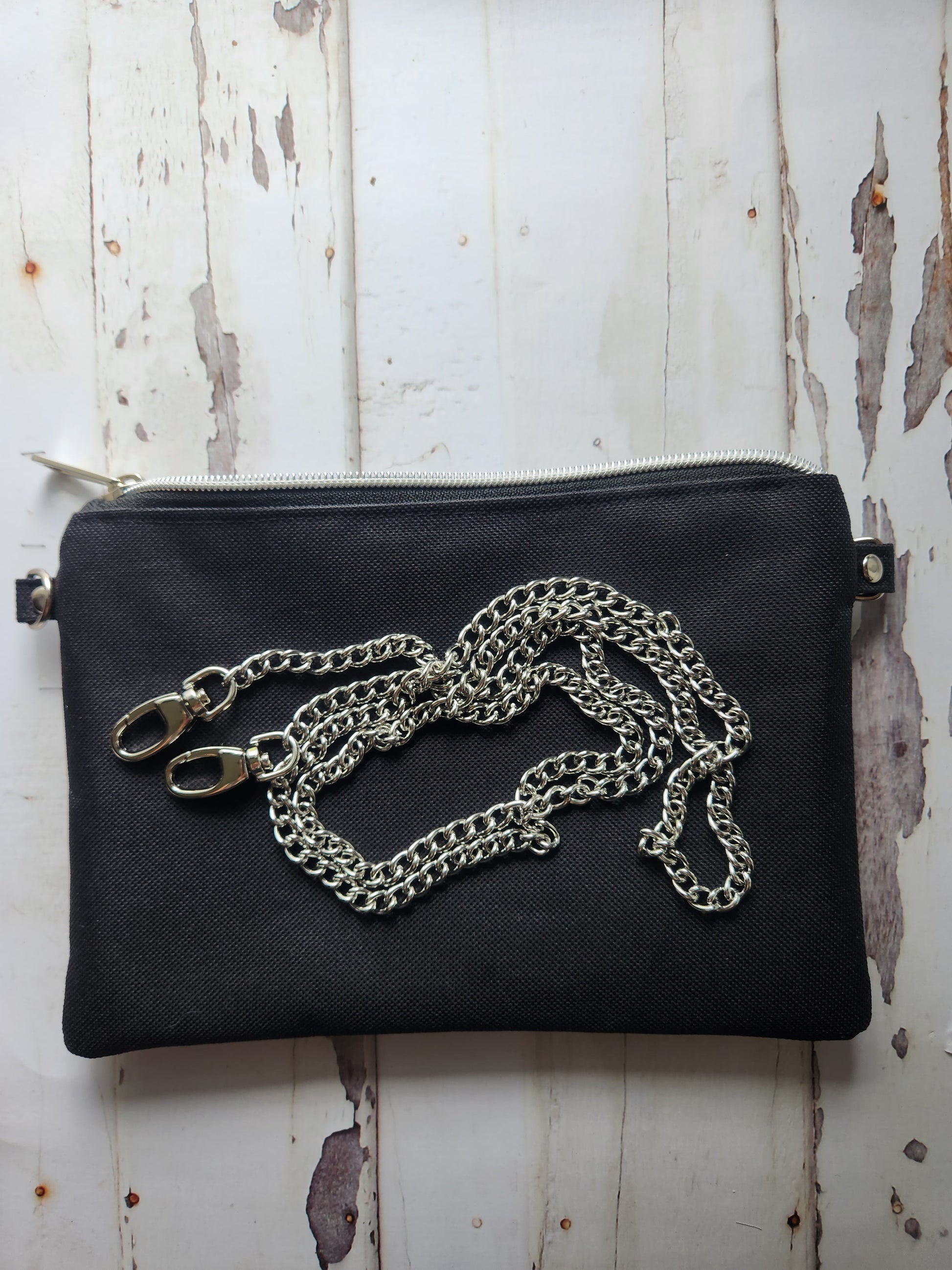 Includes your choice of crossbody chain strap or 3/4" wide adjustable canvas strap.