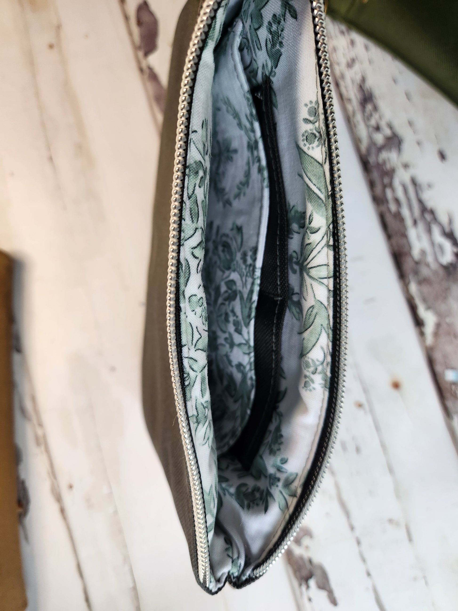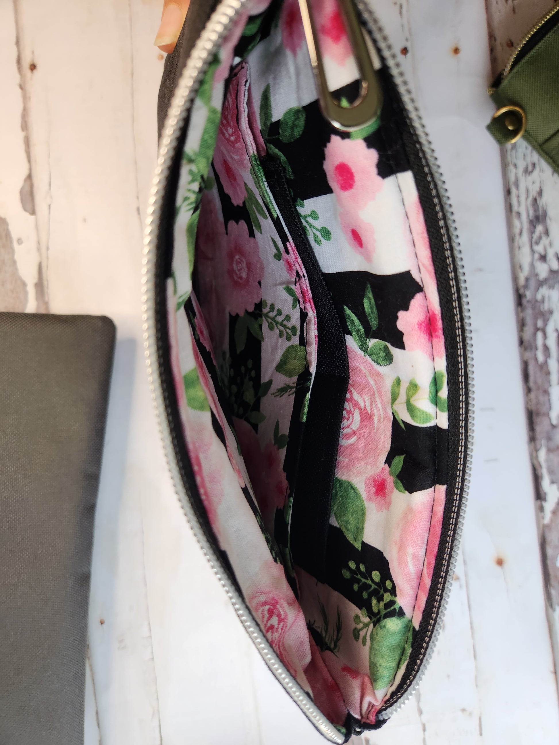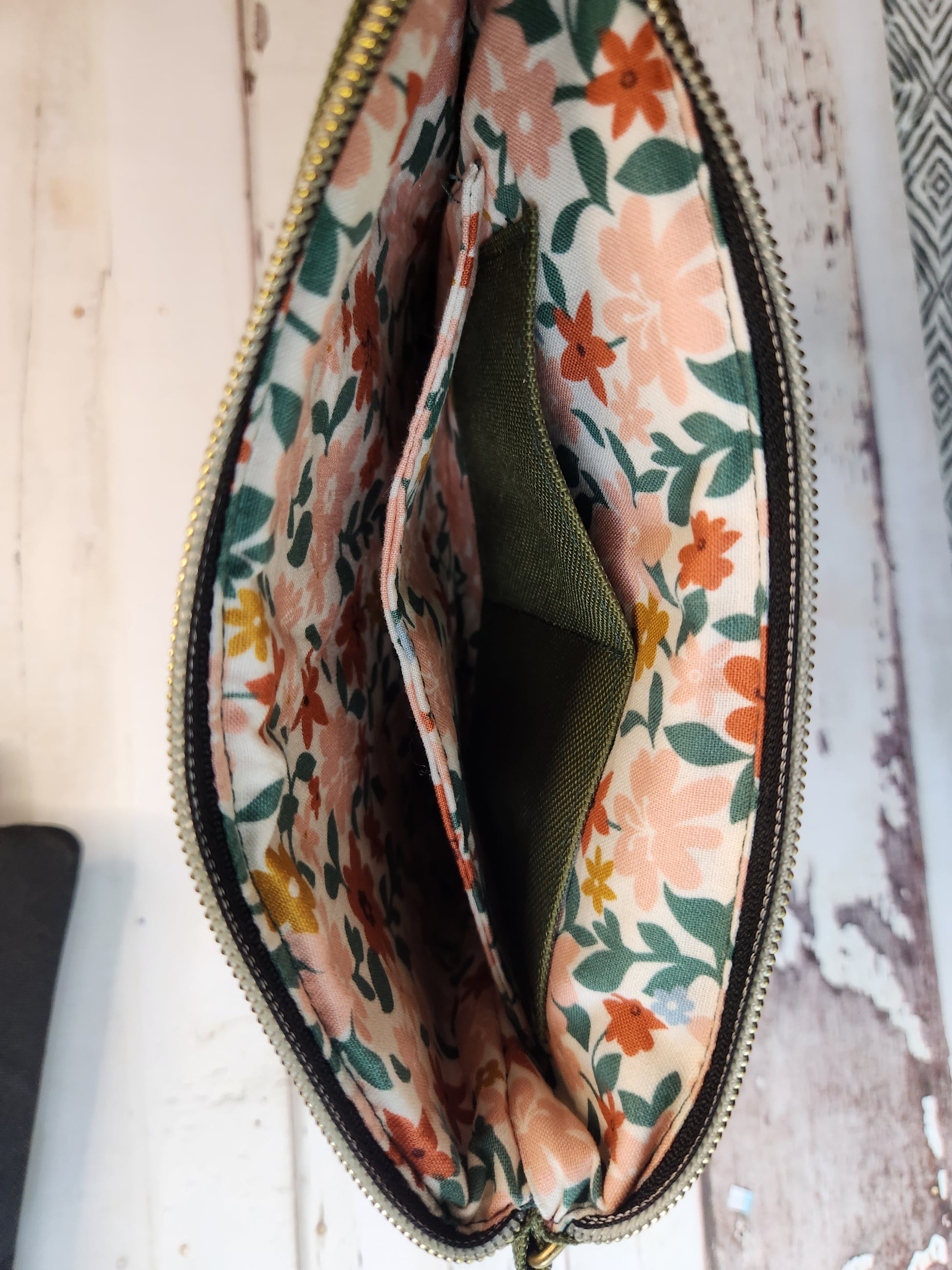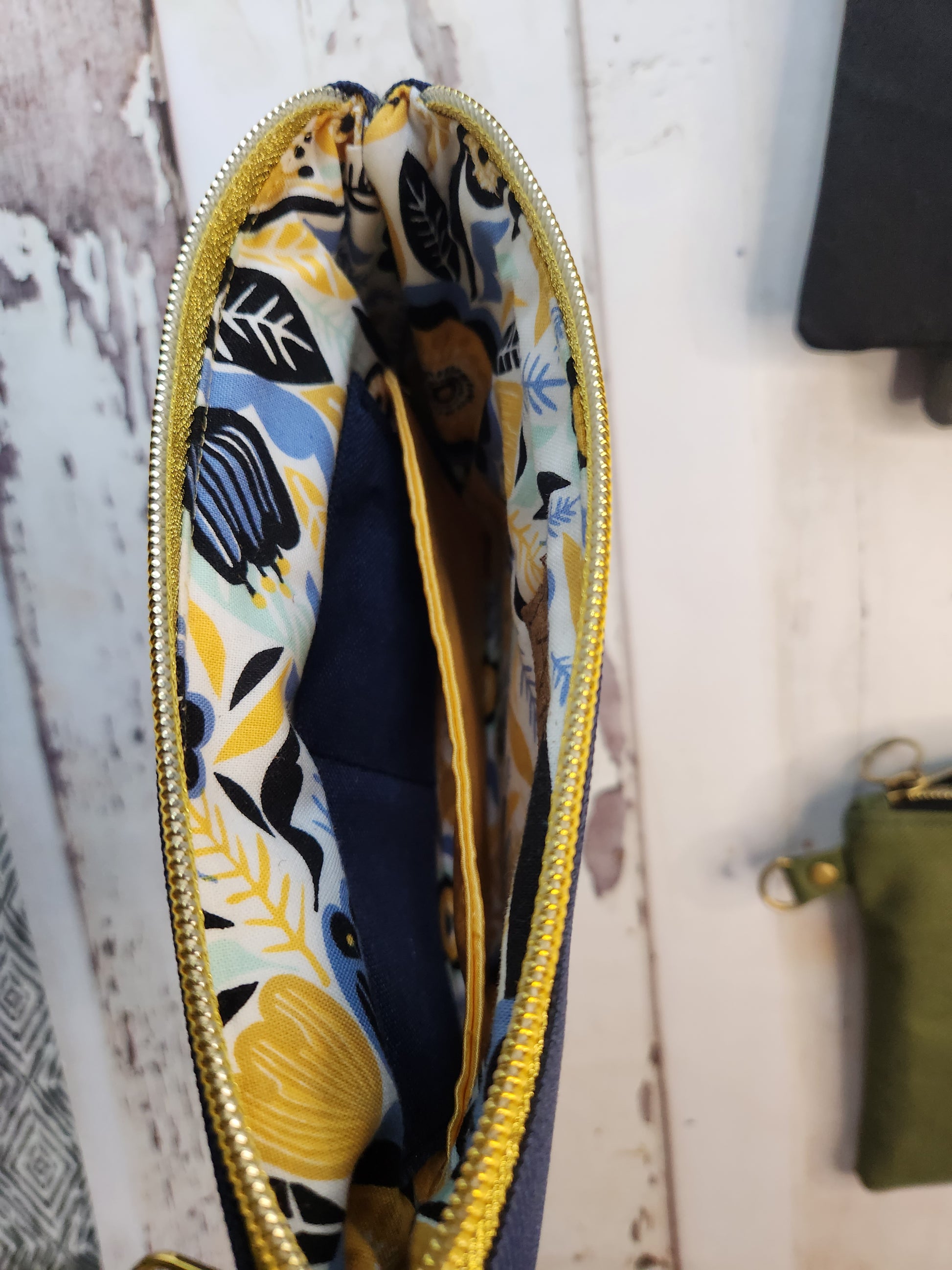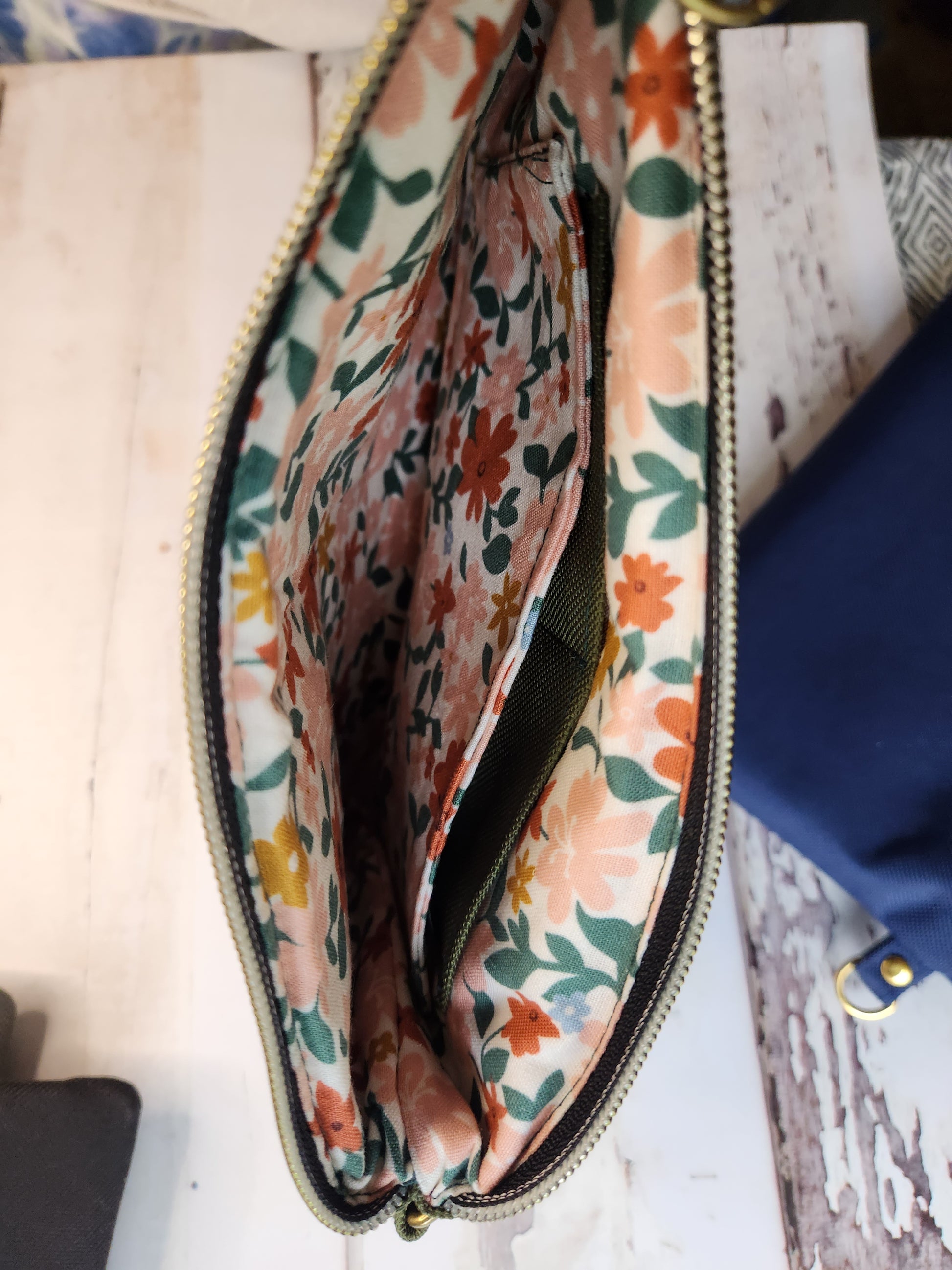 Beautiful cotton print interiors include 2 card pockets that can hold multiple cards each and a cash pocket as well.