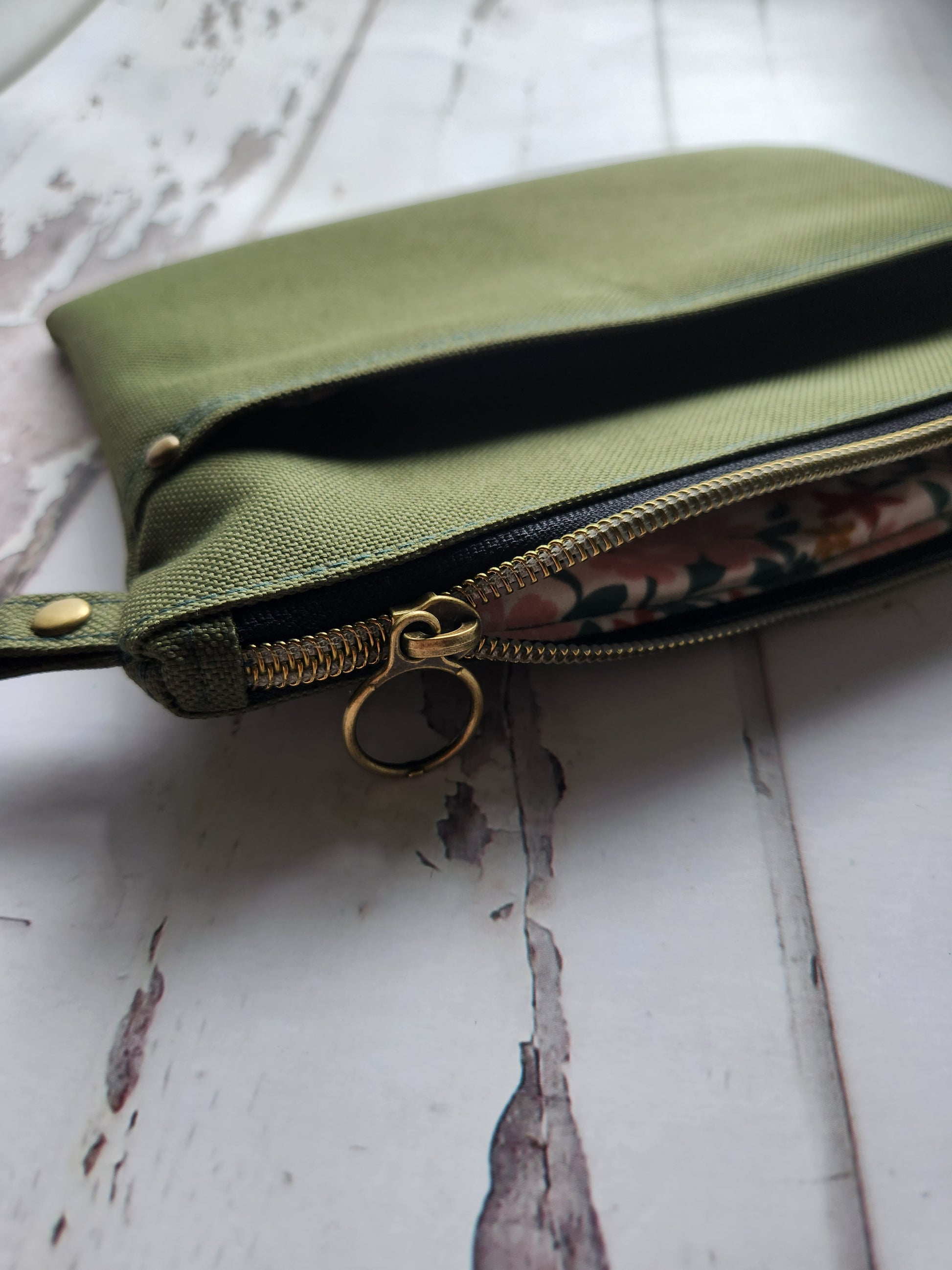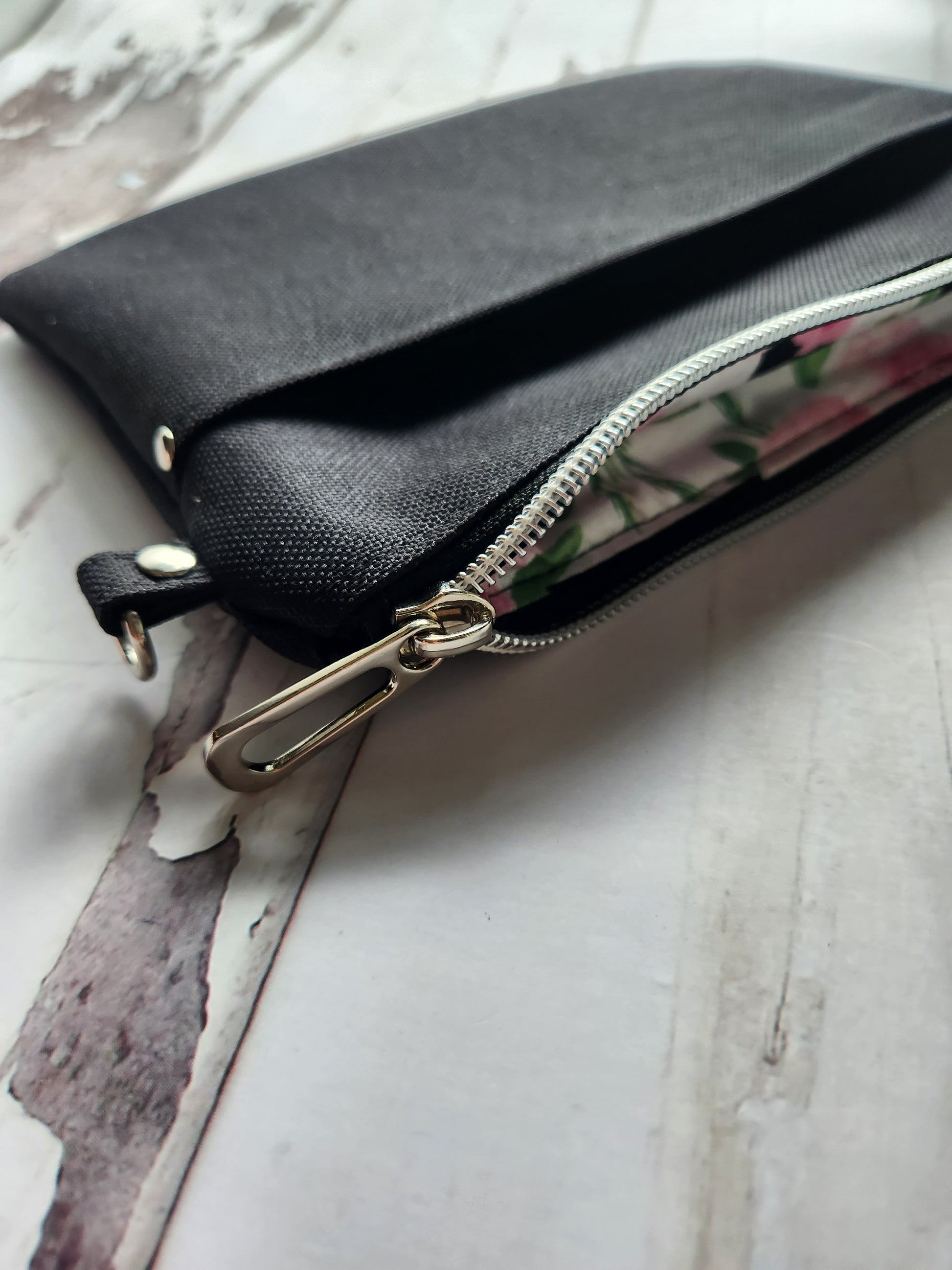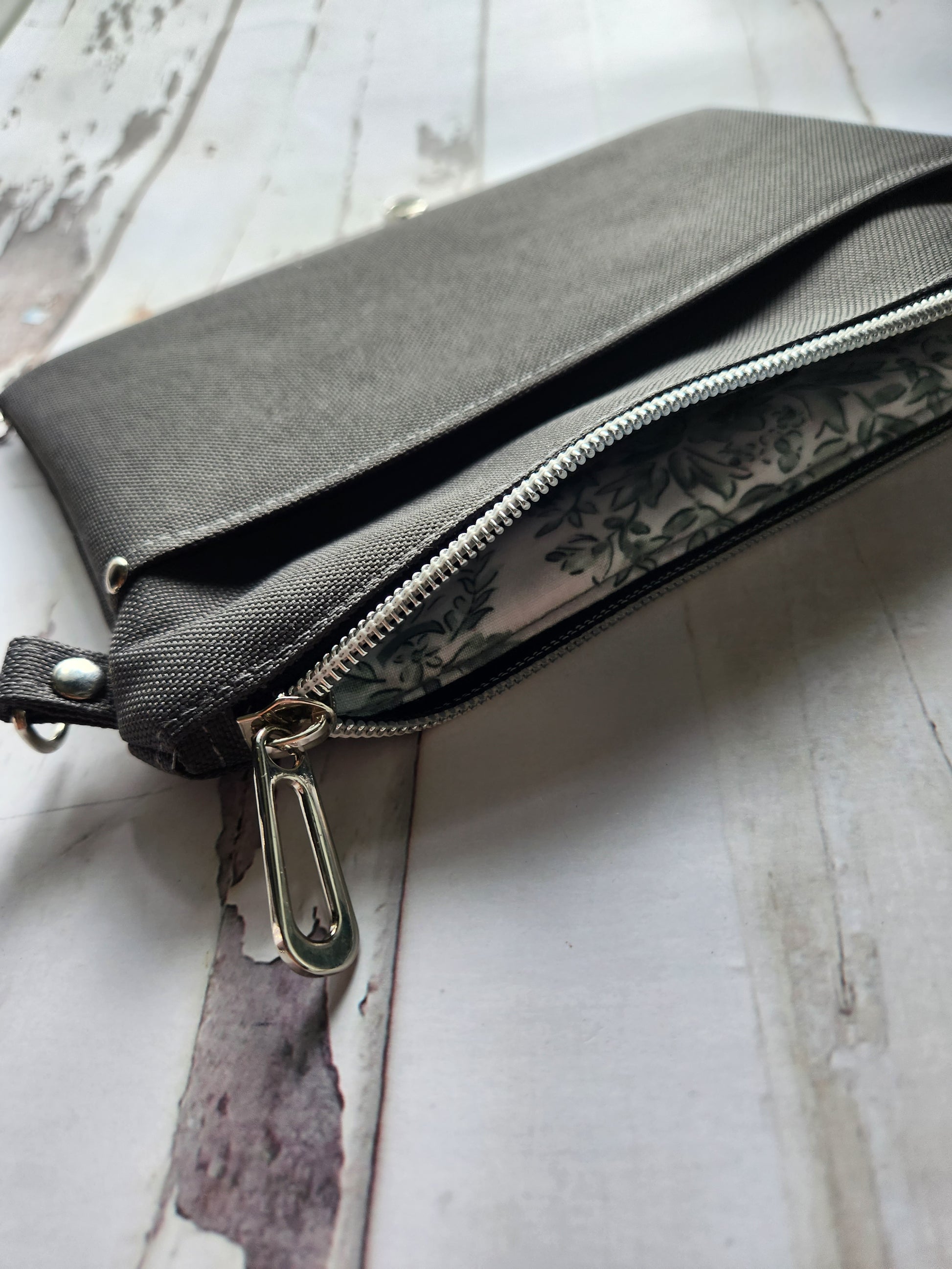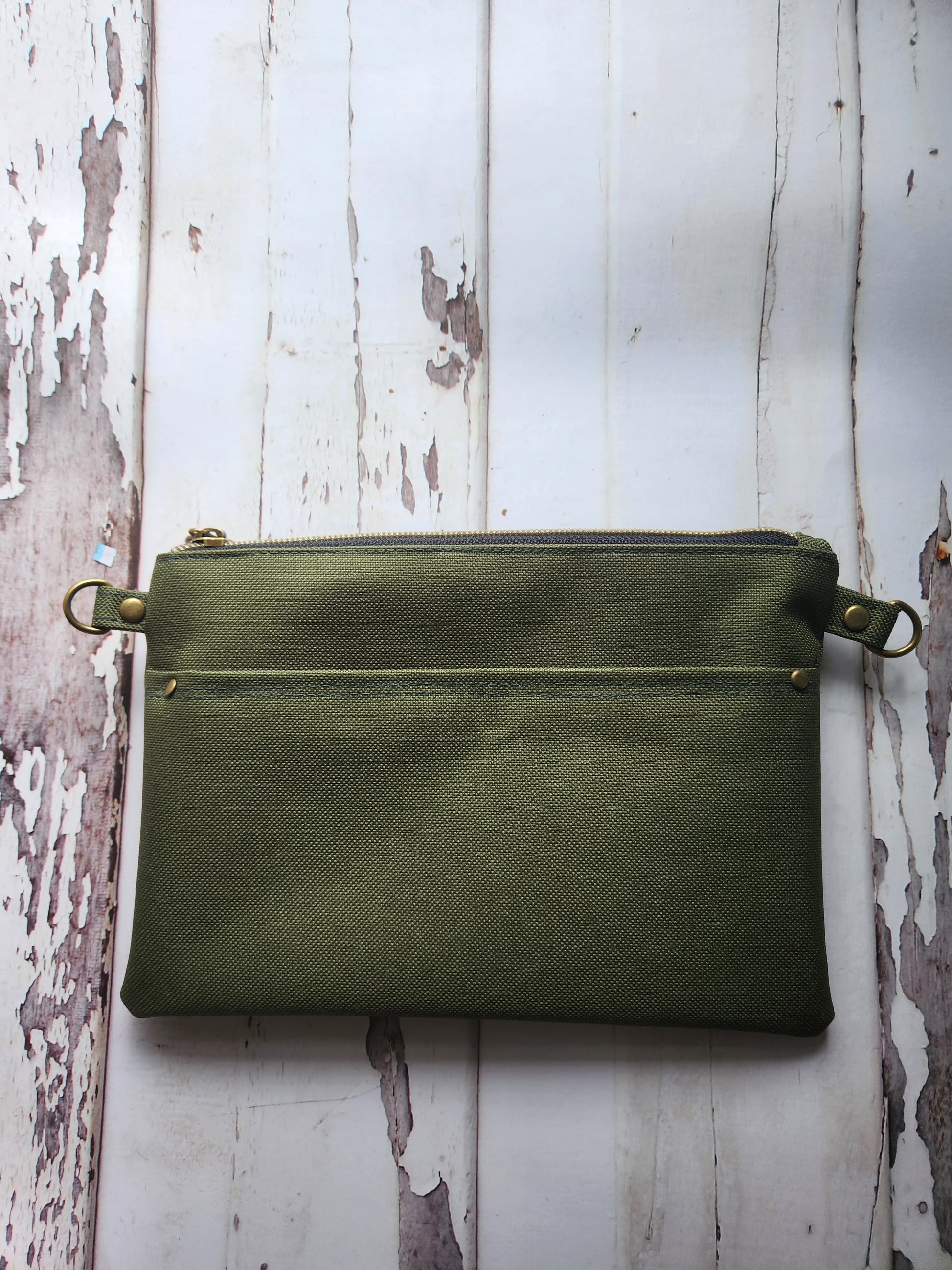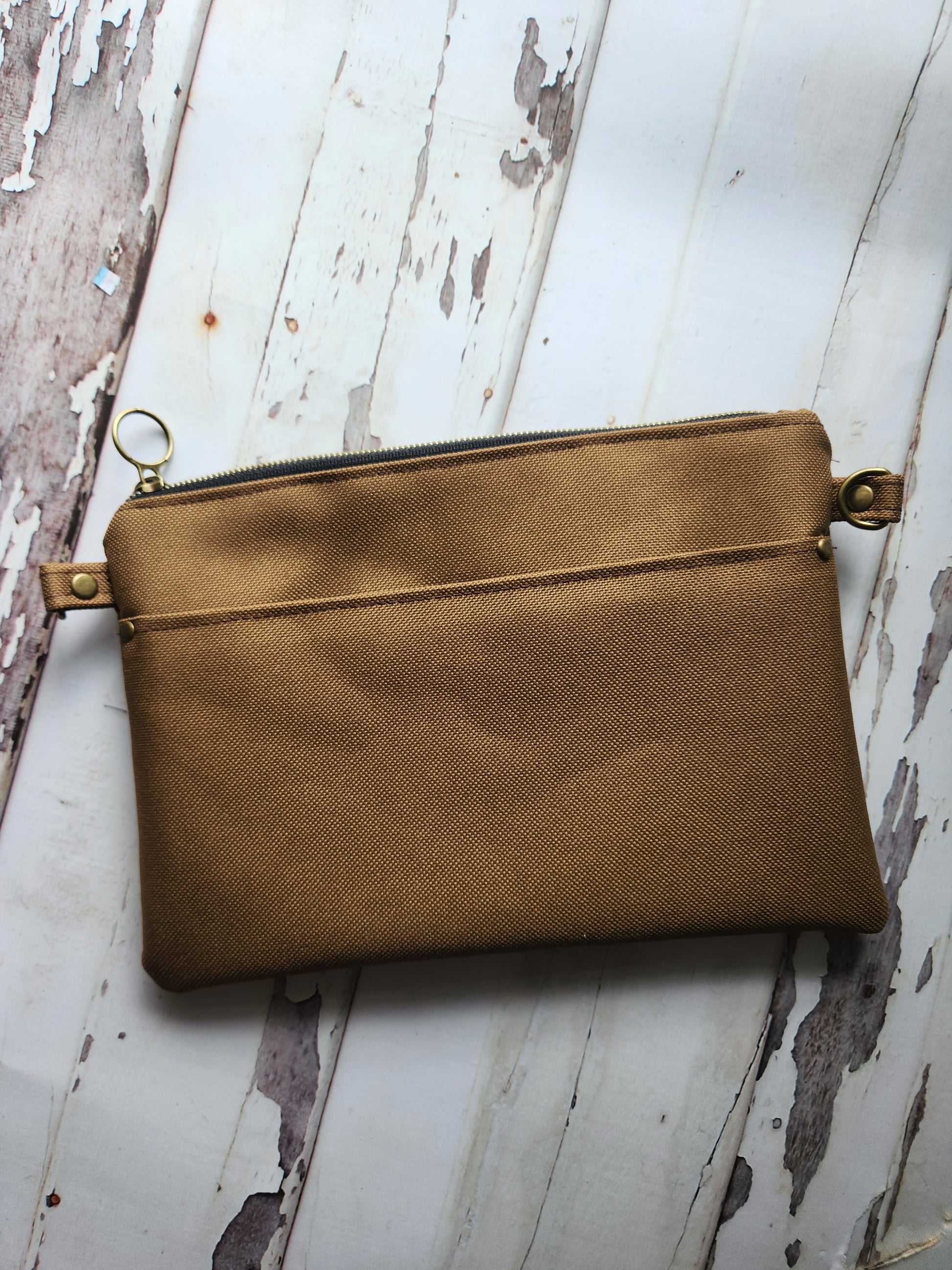 Use as a clutch, wristlet, wallet or crossbody and a perfect size (9"W x 6"H) to keep handy just what you need. Exterior slide pocket measures 9"W x 4"H and is great for just about any size phone or sunglasses. Main compartment has a zipper closure with large, easy slide zipper pulls making for easy access.